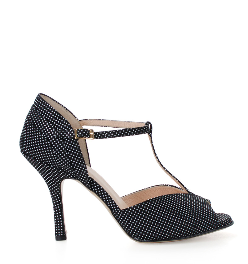 SOLEDAD- czarne sandałki w białe kropki do tańca