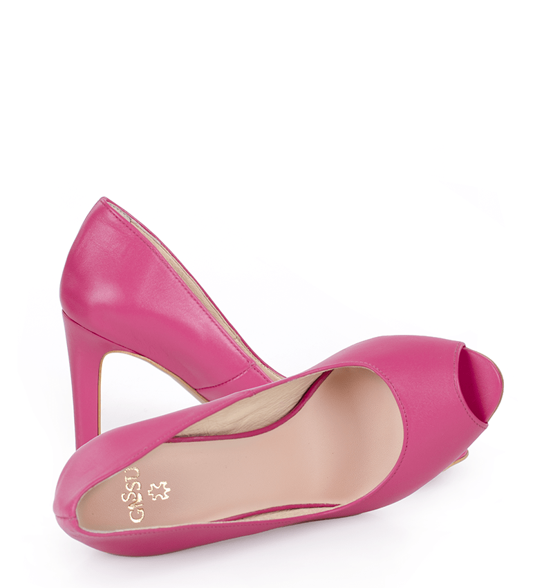 AGATE – Różowe szpilki z odkrytym palcem w kolorze fuksji, na 9,5 cm obcasie (wysokość obcasa jest mierzona w rozmiarze 37). Otwarte szpilki open-toe na wysokiej grubości stabilnej szpilce. Buty wykonane z naturalnej skóry licowej układającej się do stopy. Tęgość butów to F 1/2. Różowe czółenka na wysokim obcasie mogą stanowić uzupełnienie codziennych kreacji oraz stanowić kolorowy dodatek do sukni ślubnych.