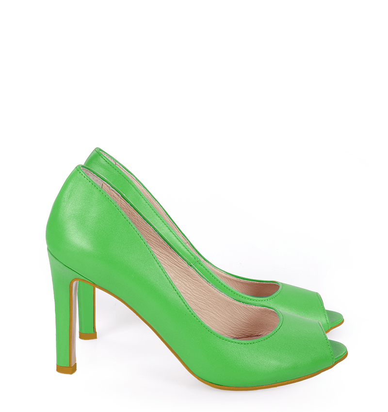 Te zielone szpilki na wysokim obcasie wykonywane są ręcznie, dzięki czemu istnieje możliwość indywidualnego dostosowania czółenek do nietypowych stóp. Nietypowe stopy? Zadzwoń - zrobimy czółenka na indywidualne zamówienie.