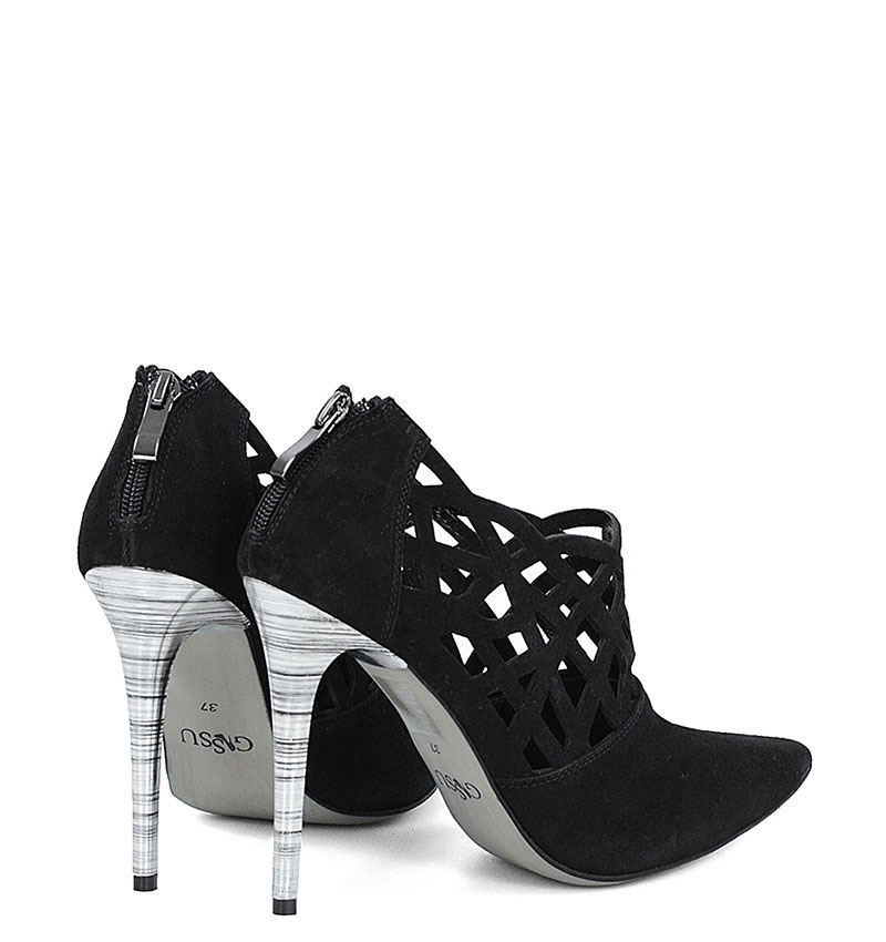 AMELIA – Czarne botki do kostki na szpilce (ażurowe)