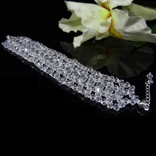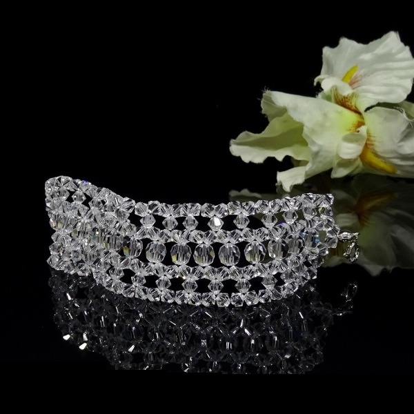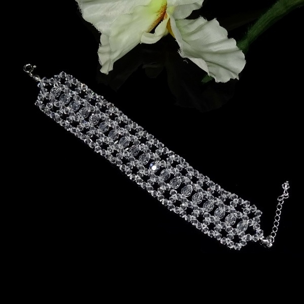 Bransoletka – szeroka, wykonana z kryształów Precioso oraz srebra rodowanego pr. 925. Doskonały dodatek ślubny i wieczorowy.