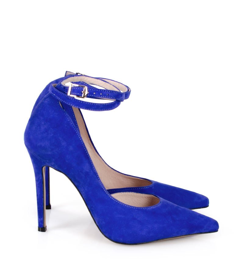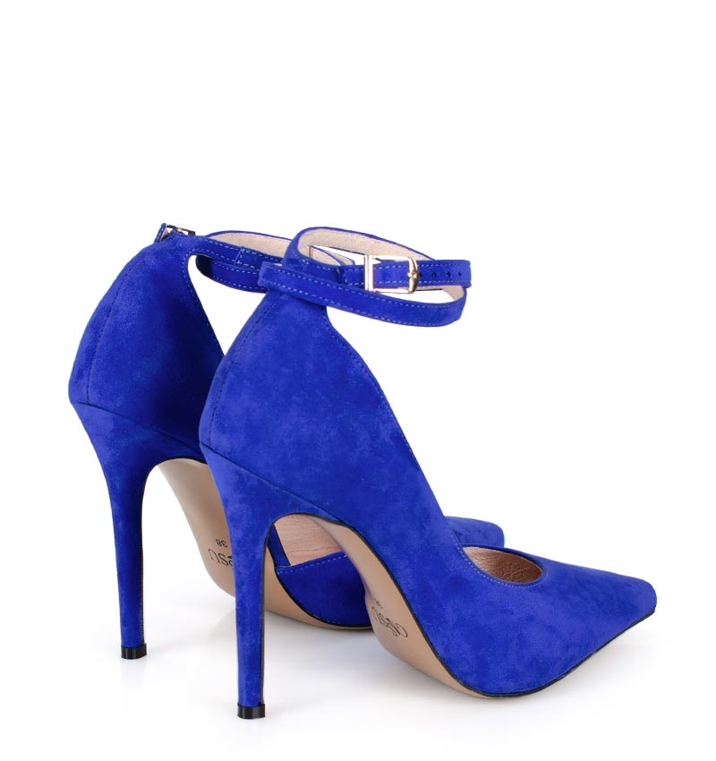 DENISE – Niebieskie zamszowe szpilki z paskiem