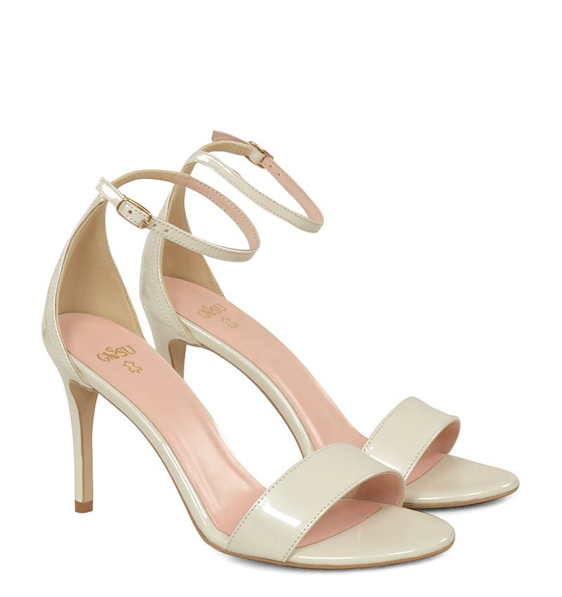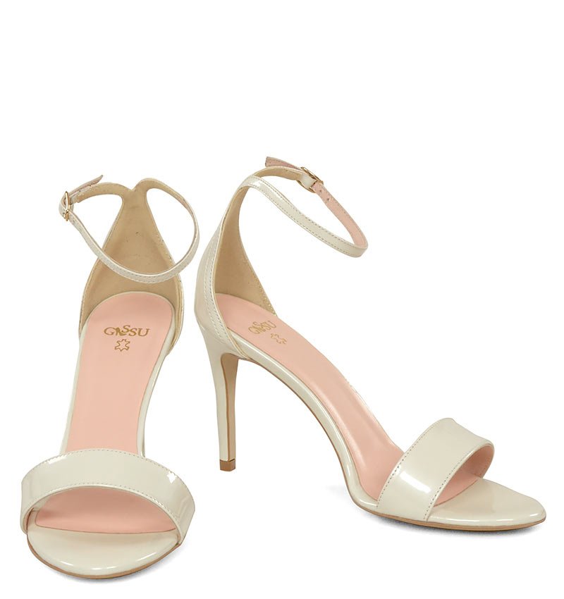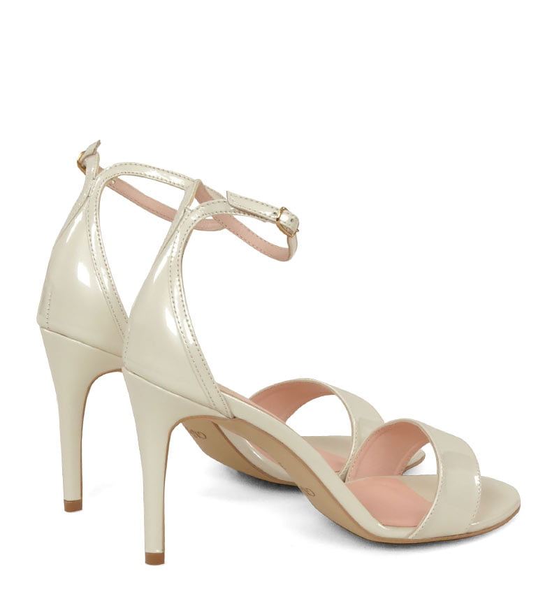 ELLA – Ecru sandałki na szpilce lakierowane