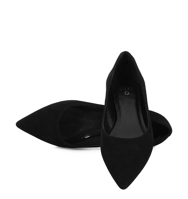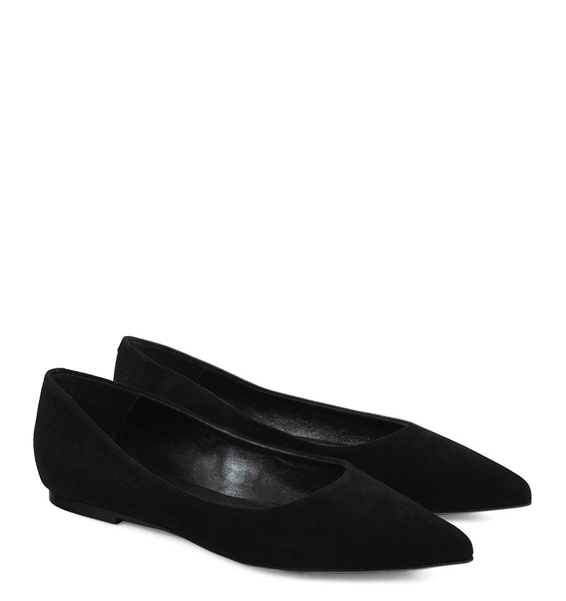 EMILY – Czarne baleriny z zamszowej skóry nosek w szpic