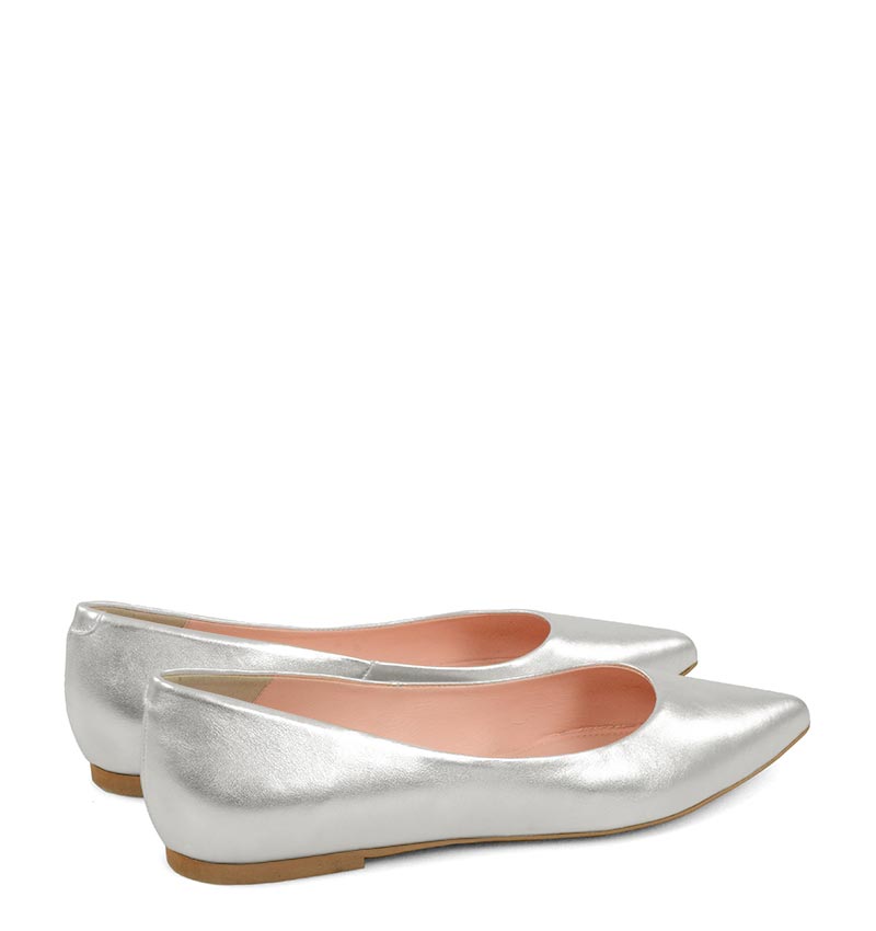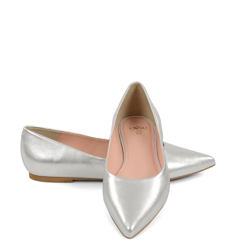 EMILY – Srebrne baleriny z licowej skóry nosek w szpic