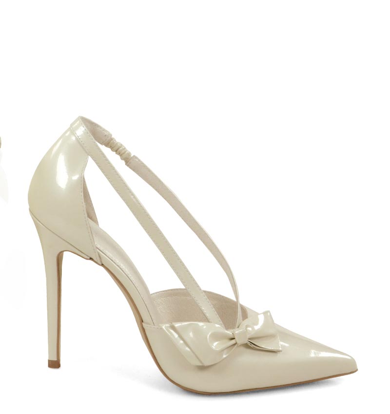 – Cholewka: Ecru perła skóra lakierowana