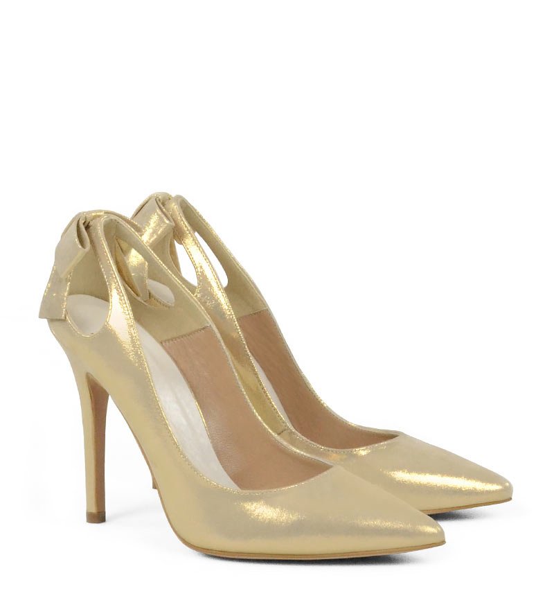 EVIE – Złote szpiki z satynowanej skóry z kokardą