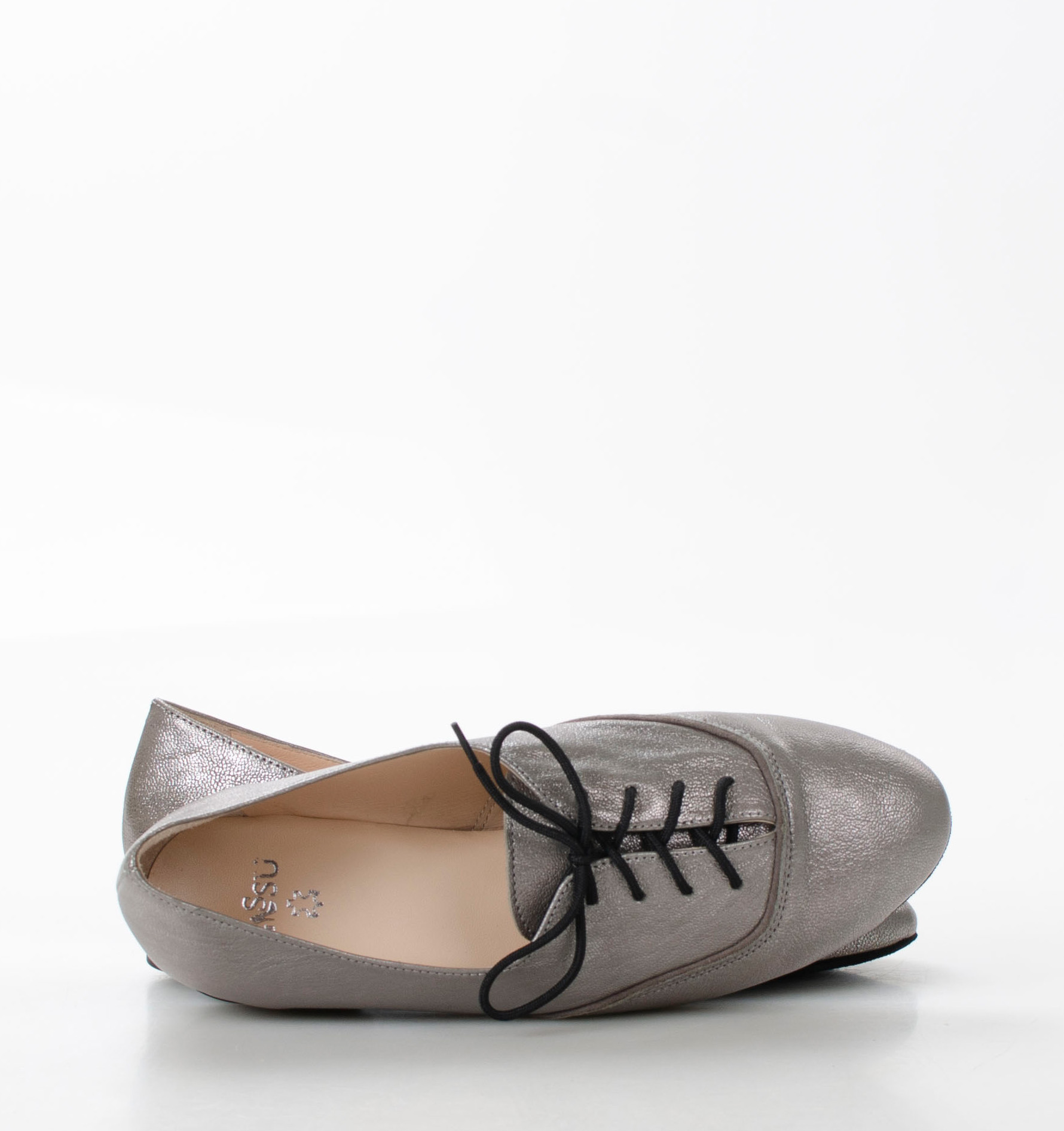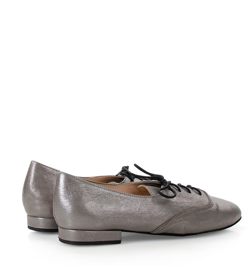 FLORES – buty treningowe na płaskim obcasie o wysokości 1,5 cm (mierzone dla rozmiaru 37) w kolorze grafitowym. Przeznaczone do ćwiczeń różnych stylów tanecznych. Skórzana podeszwa jest elastyczna i miękka, bez dodatkowego usztywnienia, co zapewnia swobodę ruchu. FLORES to komfortowe, sznurowane buty idealne do treningu tańca.