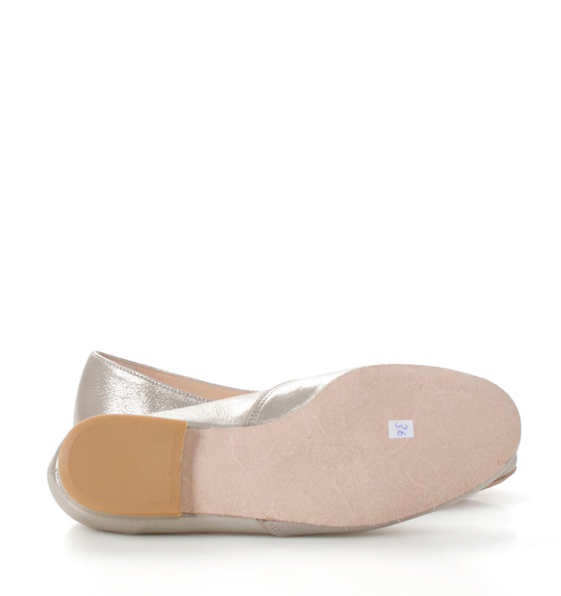 FLORES – złote buty treningowe wykonane z licowej skóry o delikatnym różowym odcieniu. Płaski obcas o wysokości 1,5 cm (dla rozmiaru 37) sprawia, że są idealne do ćwiczeń tanga oraz innych technik tanecznych. Miękka, elastyczna podeszwa z naturalnego weluru nie posiada usztywnień, co pozwala na pełną kontrolę ruchu i komfort podczas treningu.