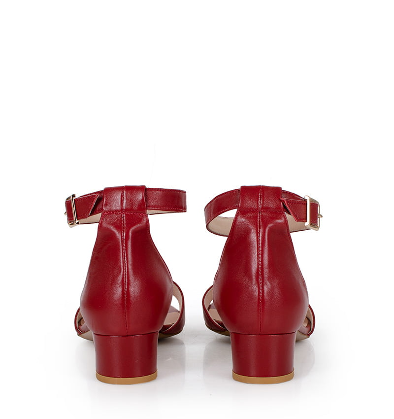 Te czerwone sandałki na niskim obcasie wykonywane są ręcznie, dzięki czemu istnieje możliwość indywidualnego dostosowania sandałek do nietypowych stóp.