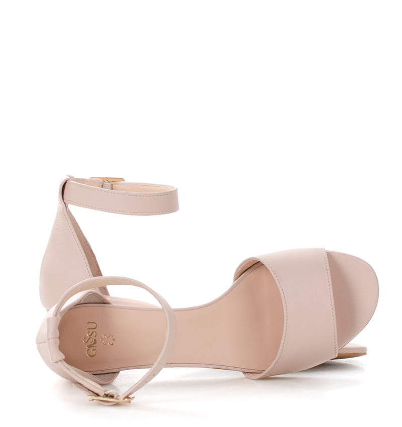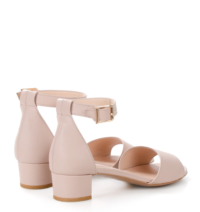 GINA – Sandałki na niskim słupku, w kolorze bladego różu. Wykonane z licowej skóry. Obcas 3,5 cm (wysokość obcasa jest mierzona dla rozmiaru 37). Wygodne sandałki z zakryta piętą i paskiem wokół kostki. Tęgość butów to F 1/2. Jasnoróżowe sandałki na niskim obcasie są bardzo wygodne i zapewniają wysoki komfort noszenia w upalne dni.