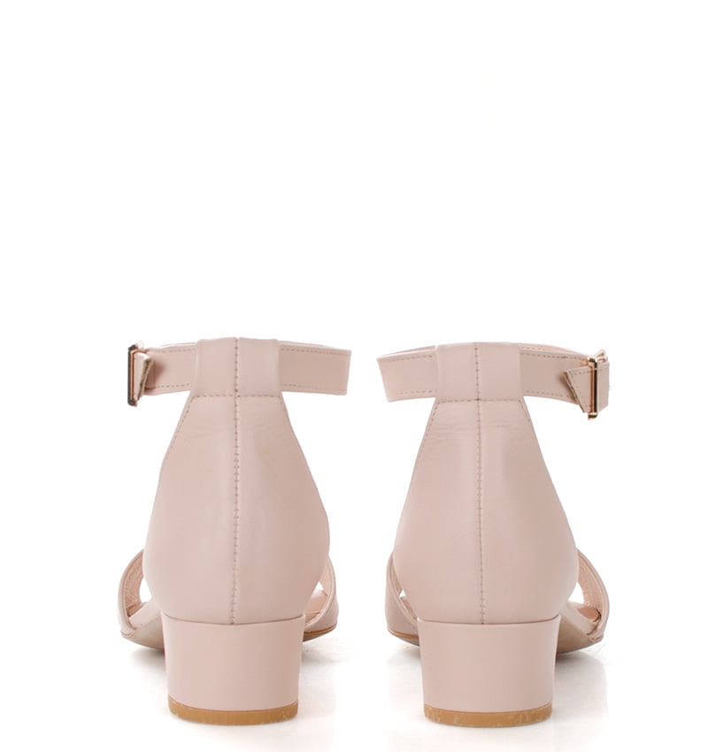 Sandałki na niskim obcasie w kolorze pudrowego różu
