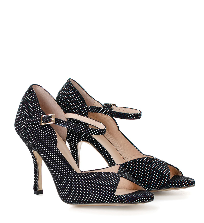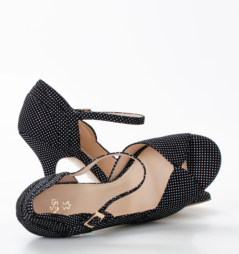 GISELLE – czarne sandałki w białe kropki do tańca