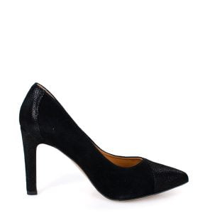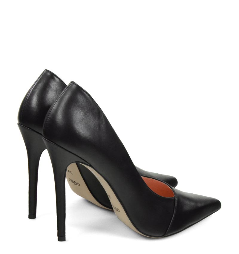 HAILEY – błyszczące, czarne wysokie szpilki na 11,5 cm obcasie (wysokość obcasa jest mierzona w rozmiarze 37). Czubek w szpic. Szpilki wykonane z naturalnej skóry licowej. Wysokość obcasa sprawia, że są to bardzo efektowne czółenka na szpilce. Tęgość butów: F 1/2. Wnętrze butów i wkładka wykonane są z koziej skóry naturalnej.
