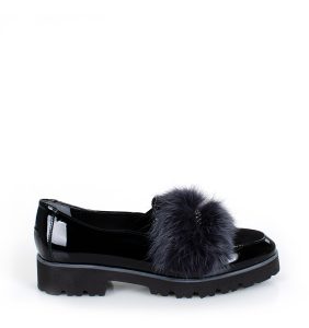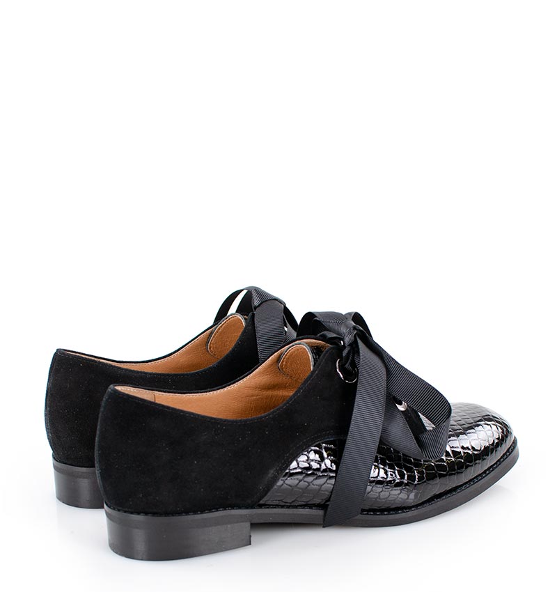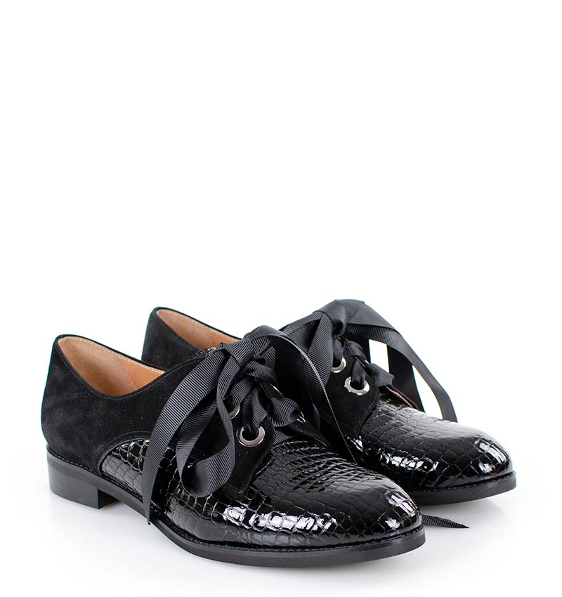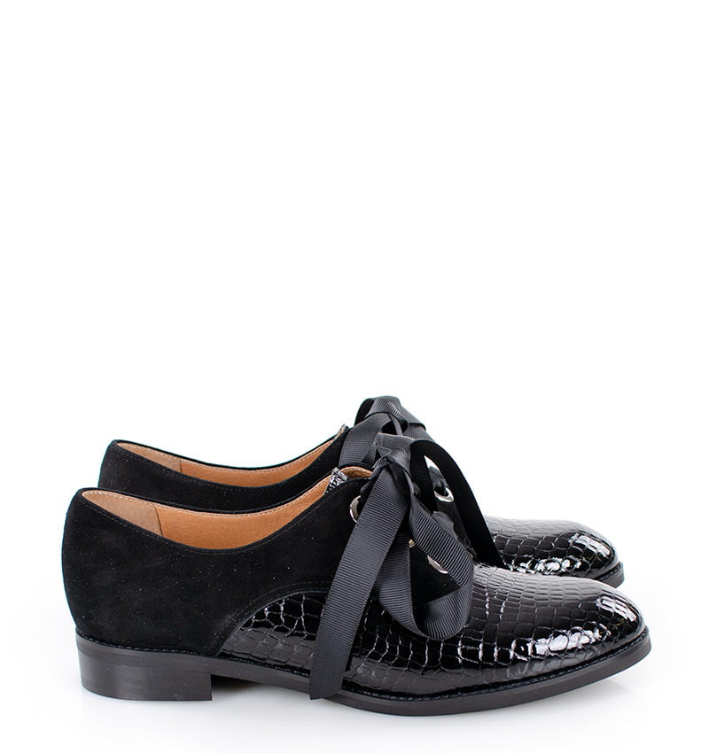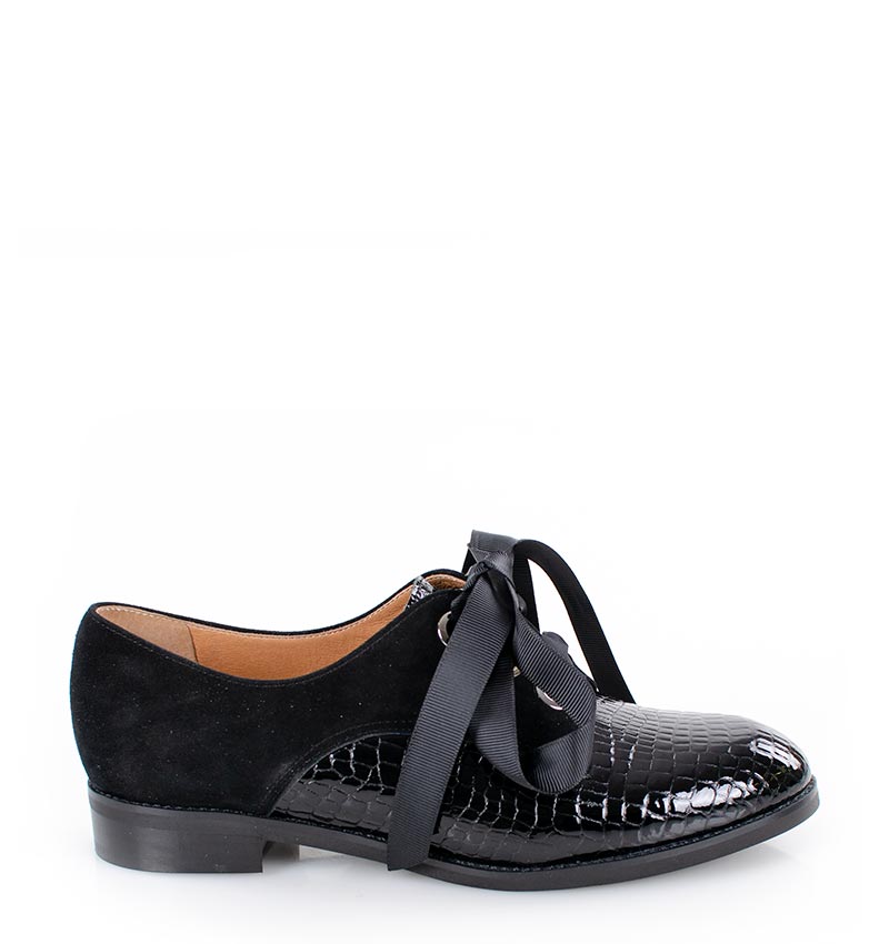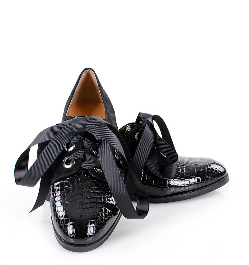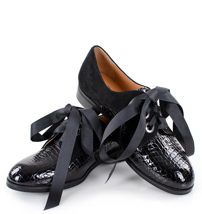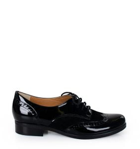 HELLEN – czarne półbuty sznurowane z lakierowanym przodem