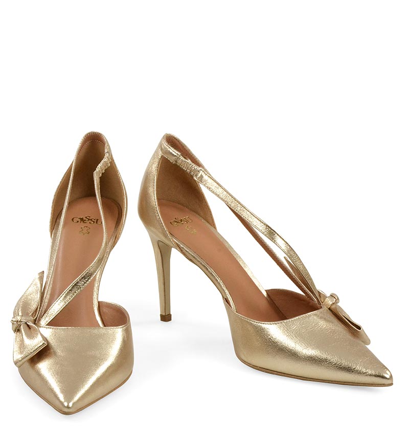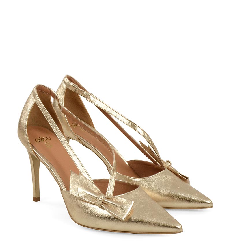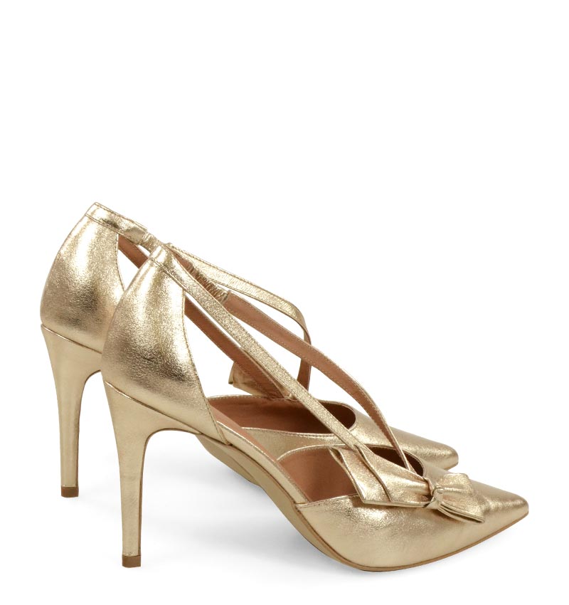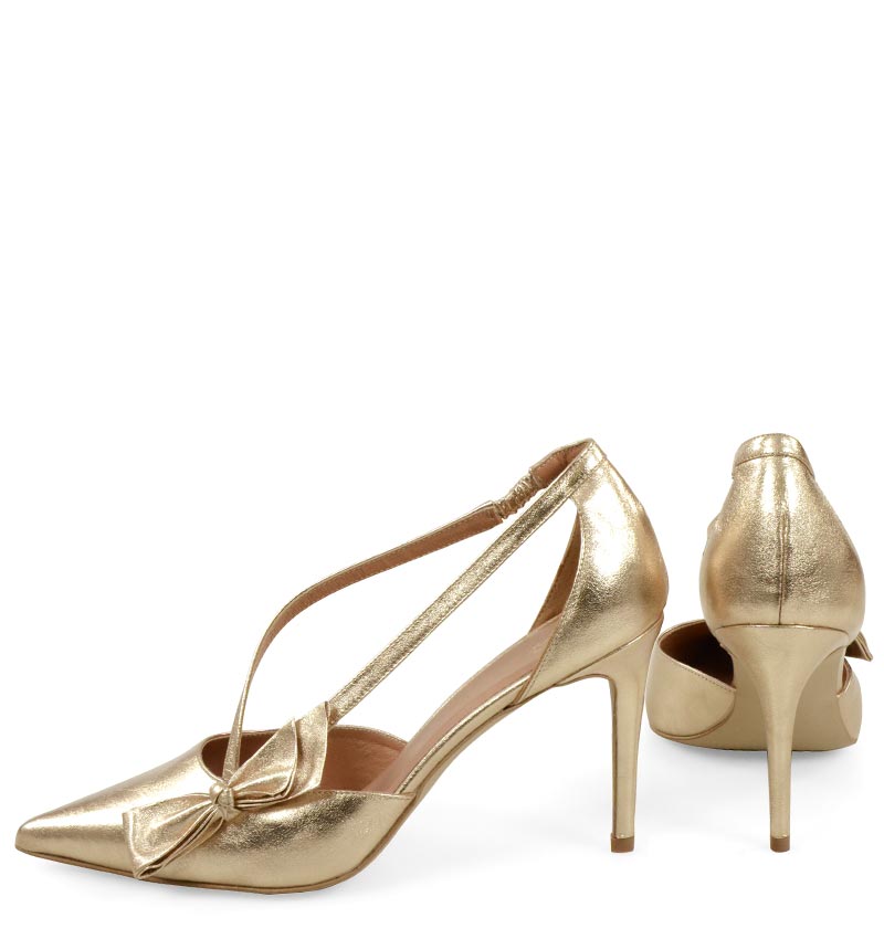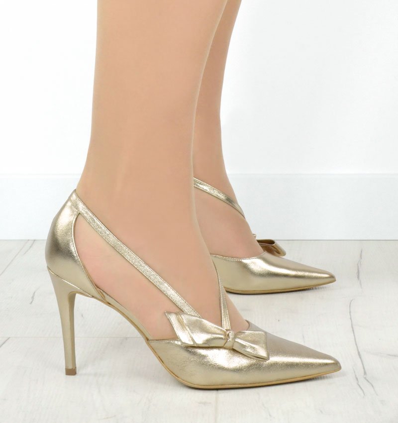 IDA – Złote szpilki z paseczkami i kokardką