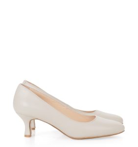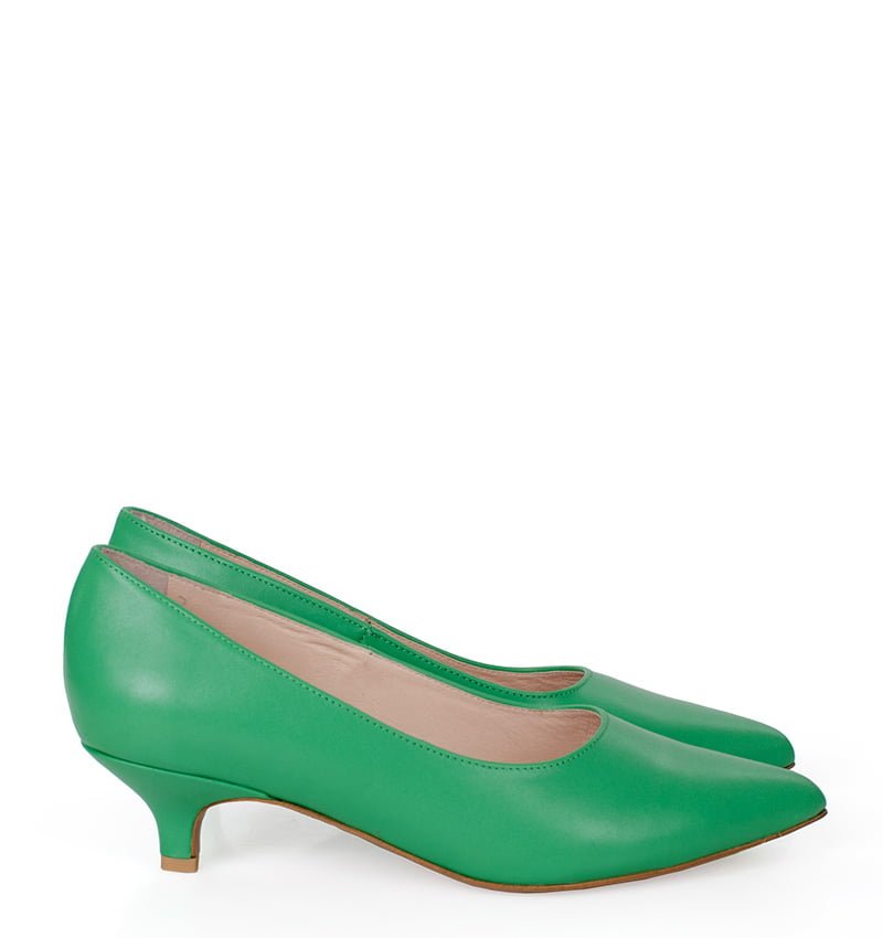 Niska, 4 cm szpilka to bardzo wygodna wysokość dla czółenek damskich. Obcas jest typu "kaczuszka", dzięki czemu czółenka wyglądają elegancko. Buty idealne dla Pań niemogących nosić wysokich obcasów.