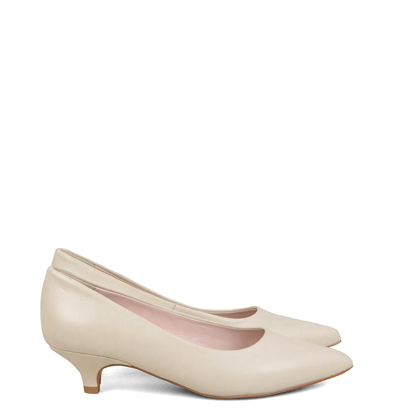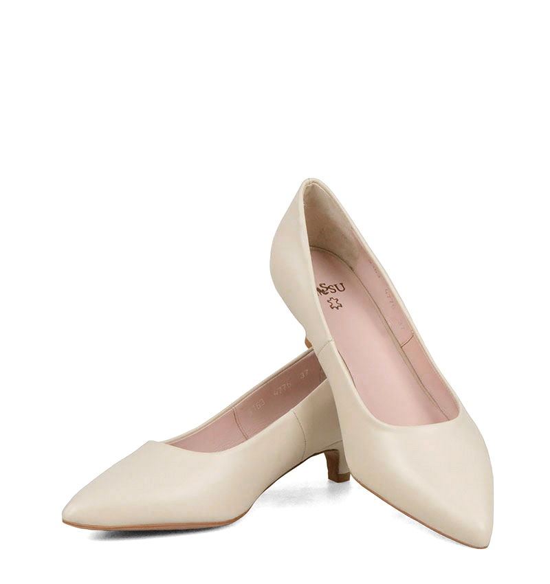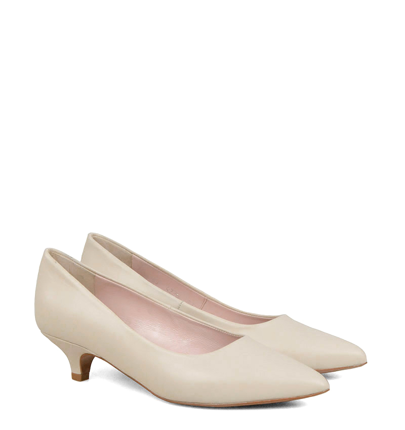 JESSICA –  Jasno beżowe niskie szpilki na 4 cm obcasie (wysokość obcasa jest mierzona w rozmiarze 37). Czubek w szpic. Buty wykonane z naturalnej skóry matowej, układającej się do stopy. Niska wysokość obcasa sprawia, że są to bardzo wygodne czółenka na szpilce. Tęgość butów: G. Wnętrze butów i wkładka wykonane są ze skóry naturalnej.