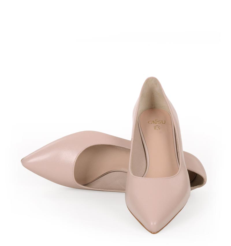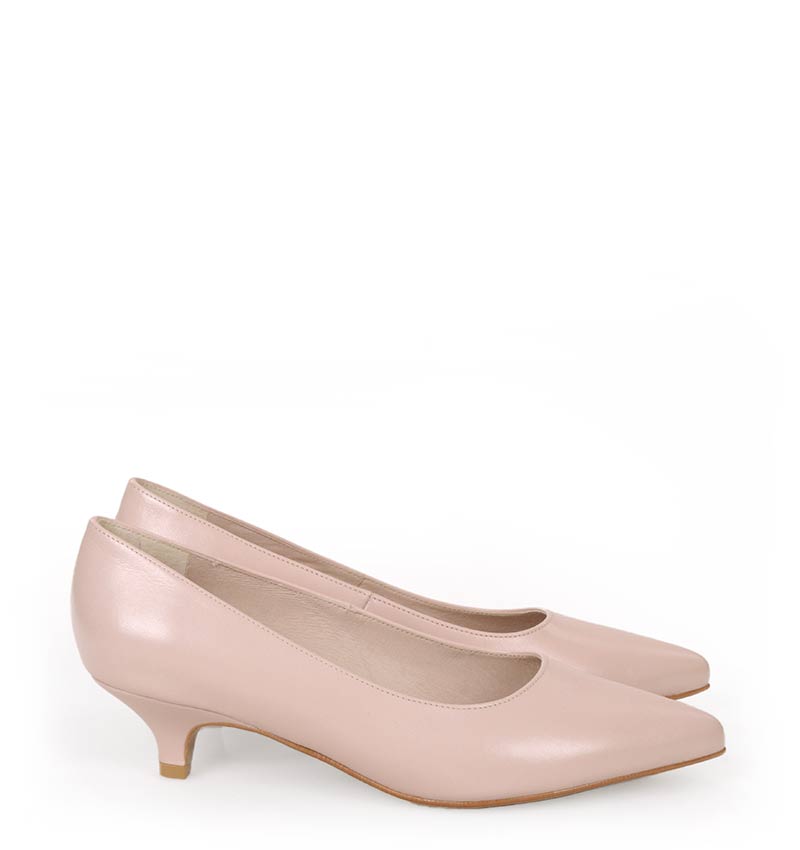 JESSICA – Pudrowe niskie szpilki na 4 cm obcasie (wysokość obcasa jest mierzona w rozmiarze 37). Czubek w szpic. Buty wykonane z naturalnej skóry licowej, układającej się do stopy. Niska wysokość obcasa sprawia, że są to bardzo wygodne czółenka na szpilce. Tęgość butów: G. Wnętrze butów i wkładka wykonane są ze skóry naturalnej.