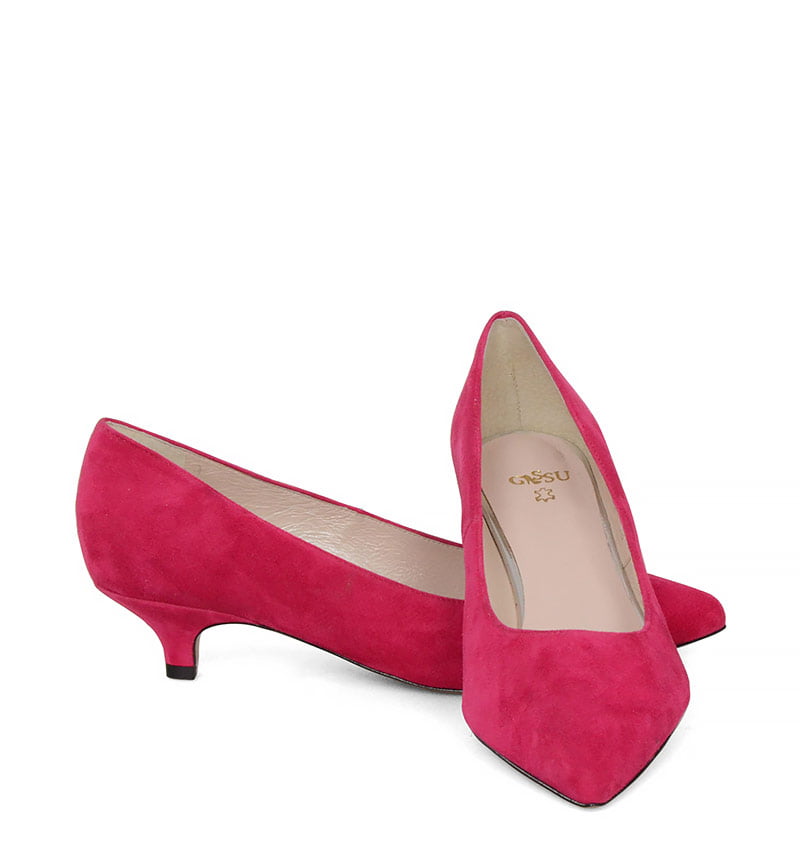 JESSICA – Różowe niskie szpilki na 4 cm obcasie (wysokość obcasa jest mierzona w rozmiarze 37). Czubek w szpic. Buty wykonane z naturalnej skóry zamszowej, układającej się do stopy. Niska wysokość obcasa sprawia, że są to bardzo wygodne czółenka na szpilce. Tęgość butów: G. Wnętrze butów i wkładka wykonane są ze skóry naturalnej.