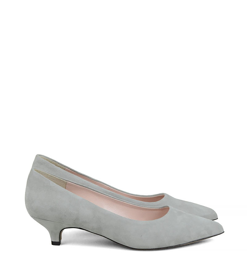 JESSICA – Szare niskie szpilki na 4 cm obcasie (wysokość obcasa jest mierzona w rozmiarze 37). Czubek w szpic. Buty wykonane z naturalnej skóry zamszowej, układającej się do stopy. Niska wysokość obcasa sprawia, że są to bardzo wygodne czółenka na szpilce. Tęgość butów: G. Wnętrze butów i wkładka wykonane są ze skóry naturalnej.