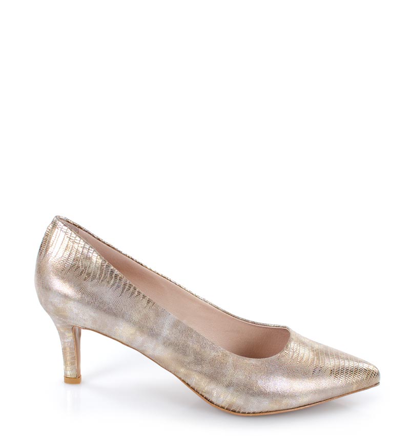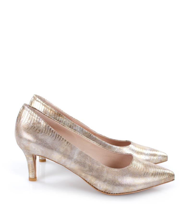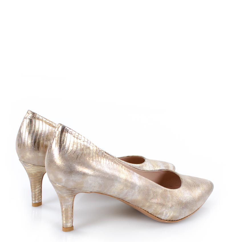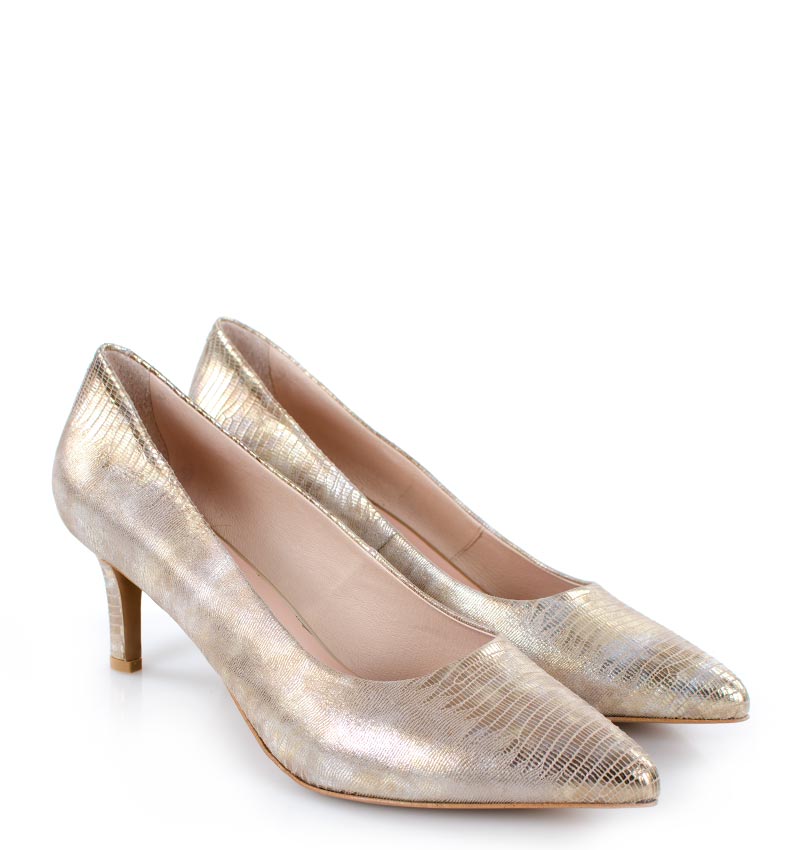 JOAN – Beżowo złote szpilki, skóra jaszczurki