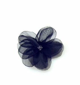 Kokarda czarna ozdoba do butów ze srebrnym środkiem, satynowe