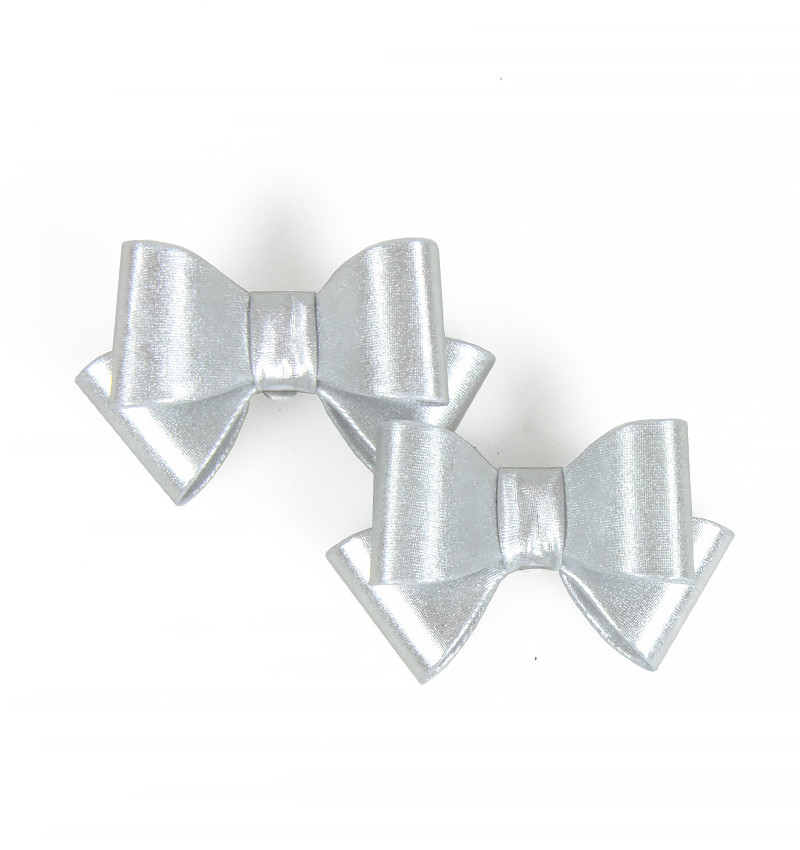 Przypinana podwójna kokarda w kolorze srebrnym, satyna