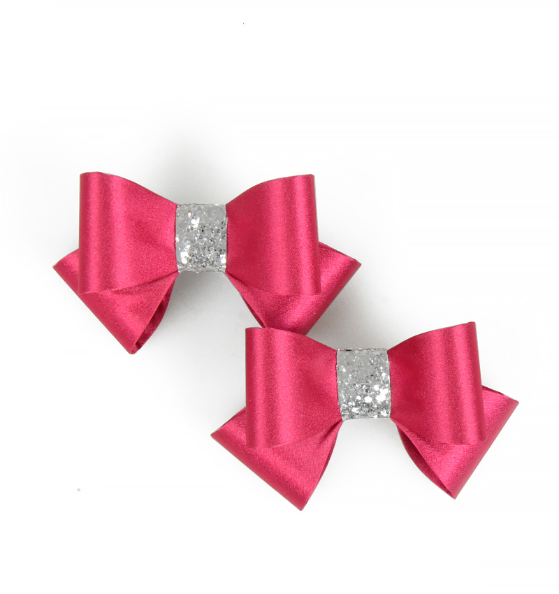 Przypinana podwójna kokarda w kolorze różowym z srebrnym środkiem