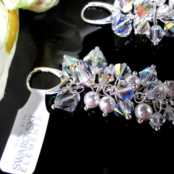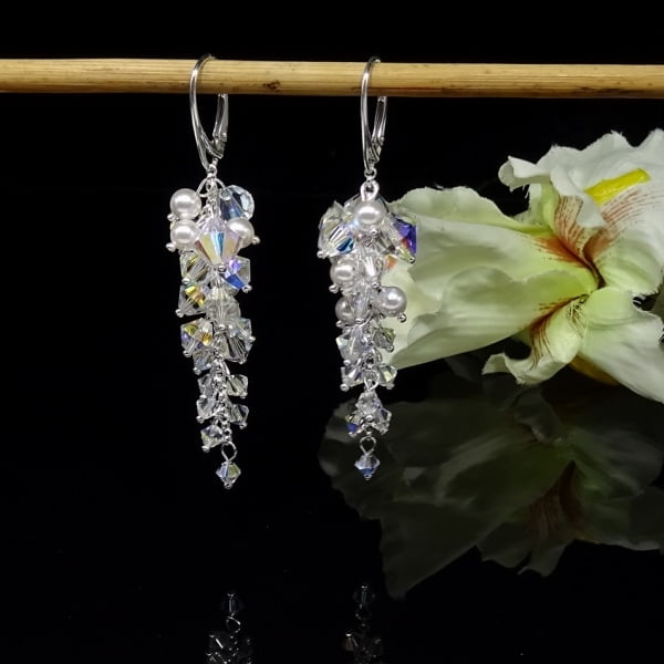 KOLCZYKI w kształcie gronek z kryształków Precioso i pereł