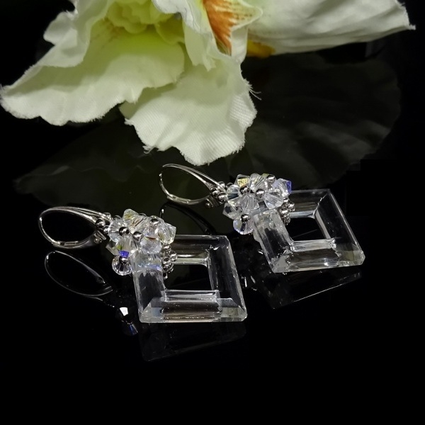 Kolczyki – srebrne p. 925, wykonane z kryształów Precioso . Doskonały dodatek ślubny i wieczorowy.