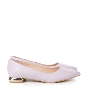 Płaski, wysoki na 2,5 cm obcas jest obciągnięty skórą w kolorze cholewki. Wysokość obcasa zapewnia naturale ułożenie stopy a przez co wysoki komfort noszenia balerinek.