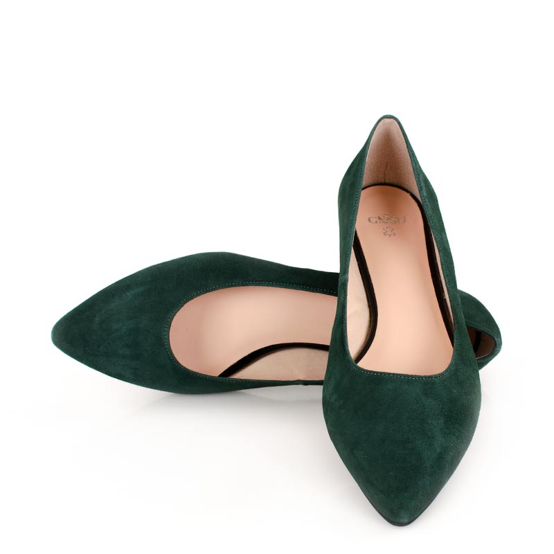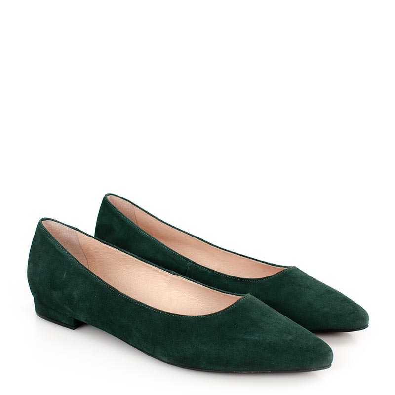 LAIA – Ciemno zielone baleriny zamszowe skóra nosek w szpic