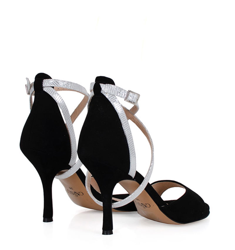 Czarno-srebrne sandałki na szpilce, wykonywane są ręcznie i możemy je wykonać w dowolnym kolorze. Jeżeli nie ma twojego koloru, napisz do nas. Buty robione ręcznie, pozwalają na indywidualne dopasowanie do stopy.