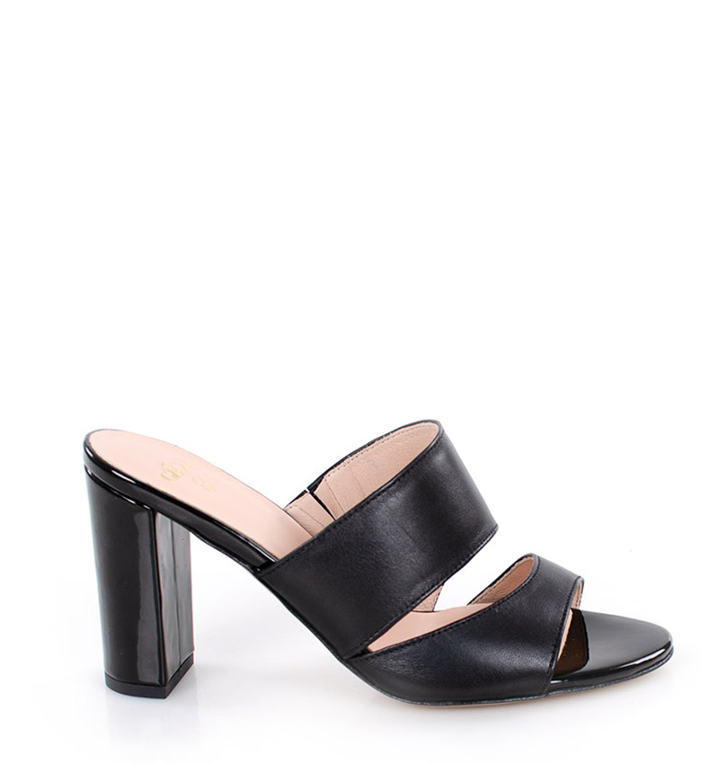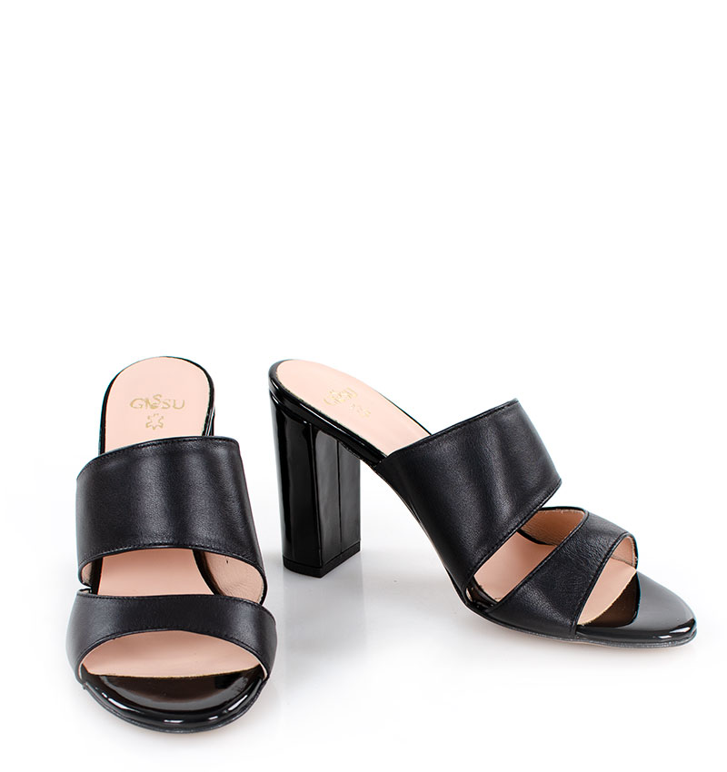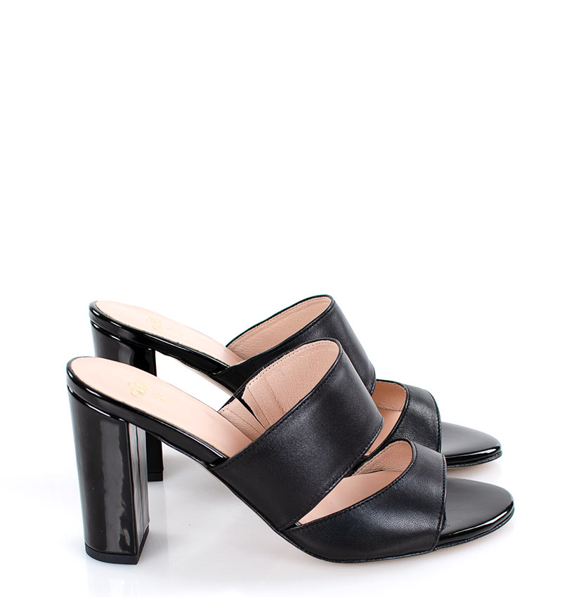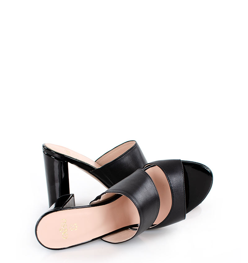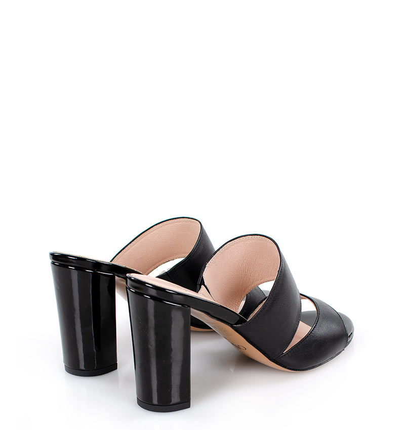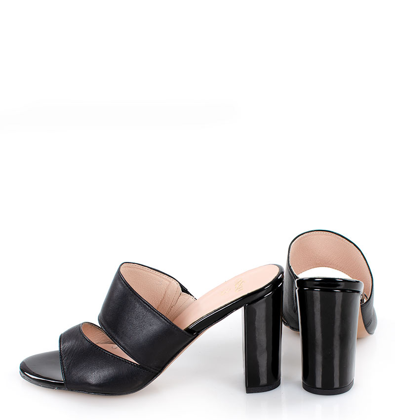 LUNA – Czarne klapki na słupku licowa skóra