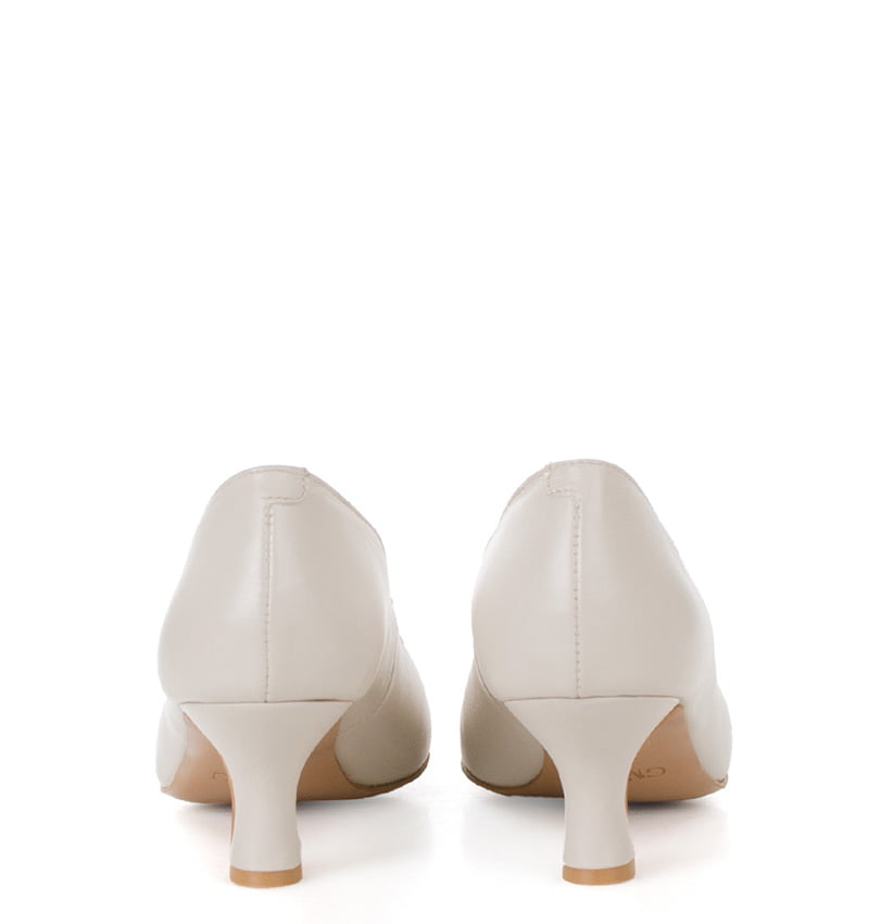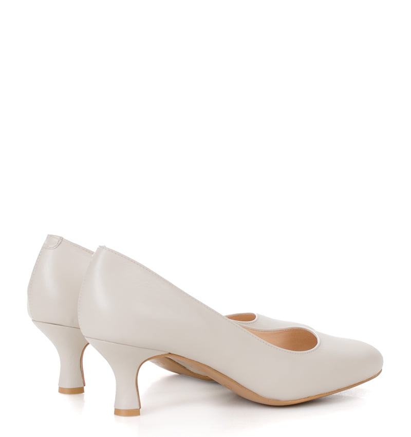 Obcas w postaci cienkiego słupka lub grubej szpilki o wysokości 5,5 cm obciągnięty został skórą. Średnia wysokość współgra z profilem butów, dzięki czemu są bardzo wygodne, nawet przy długim chodzeniu.