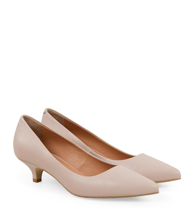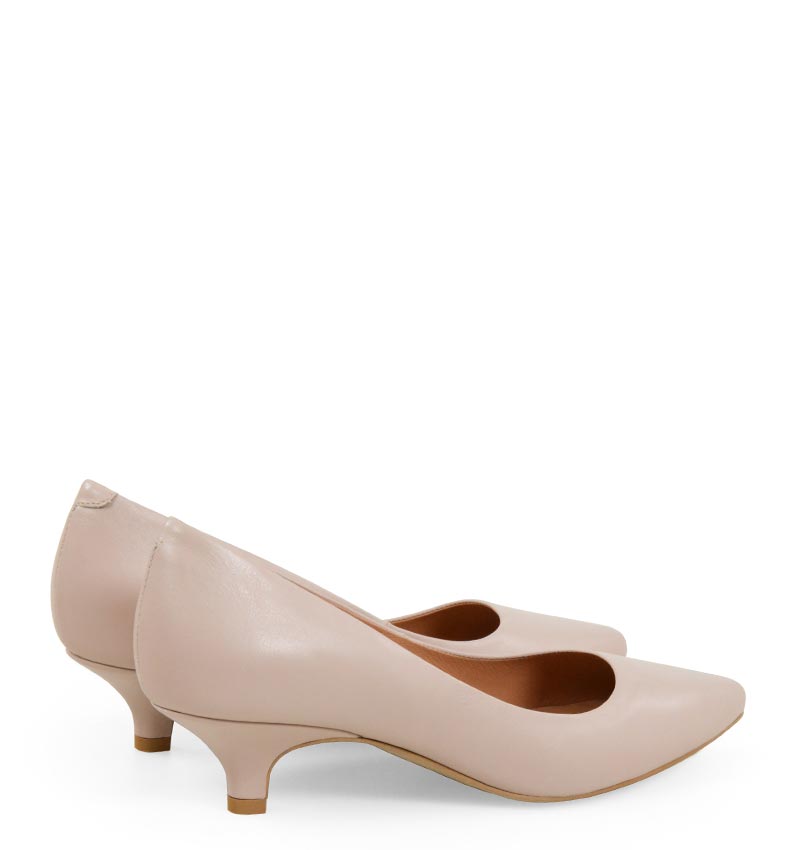 MICHELLE –  Beżowo pudrowe niskie szpilki na 4 cm obcasie na bardzo szczupłe stopy (wysokość obcasa jest mierzona w rozmiarze 37). Cholewka wykonana z naturalnej skóry licowej. Niska 4 cm szpilka sprawia, że są to bardzo wygodne czółenka na szpilce. Tęgość butów: F. Wnętrze butów i wkładka wykonane są ze skóry naturalnej.