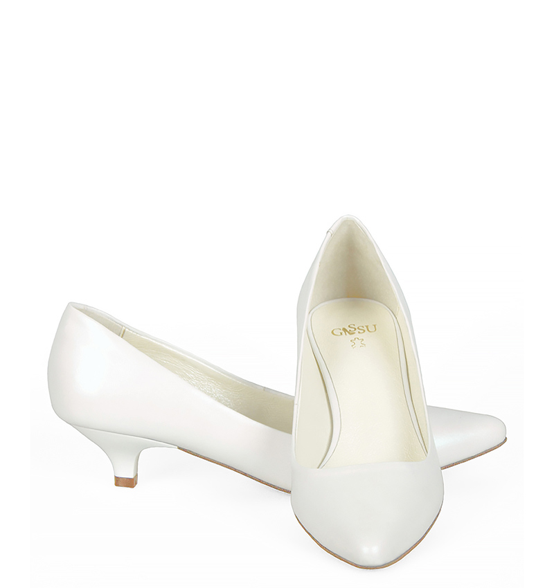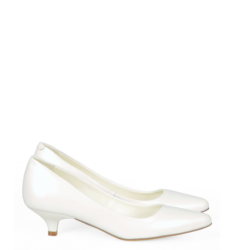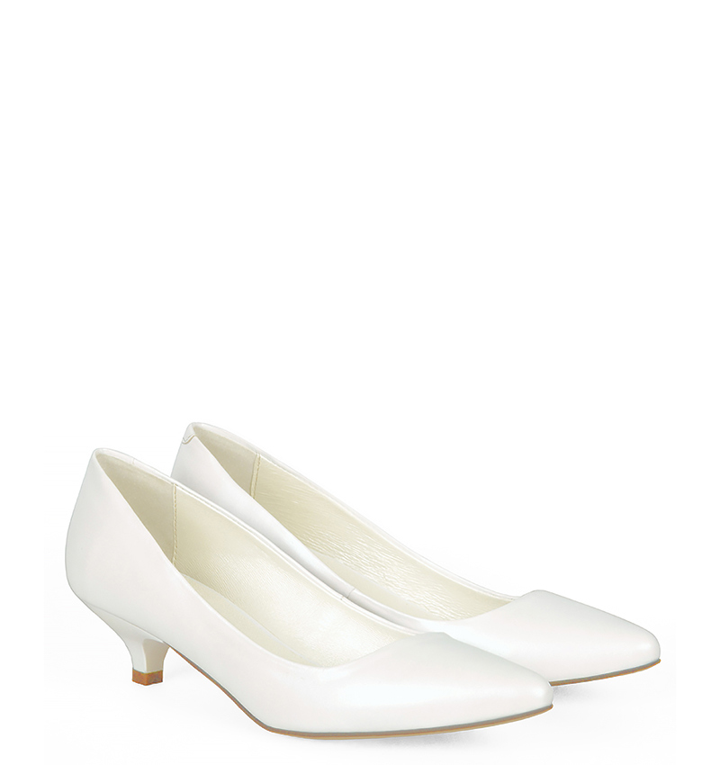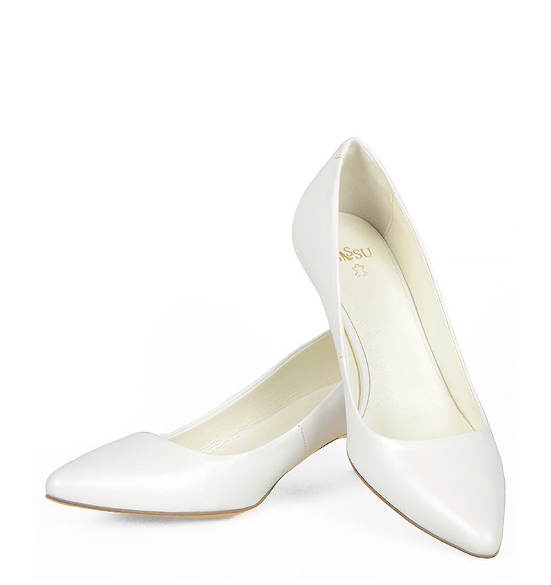 MICHELLE – Białe szpilka na niskim obcasie z perłowej skóry
