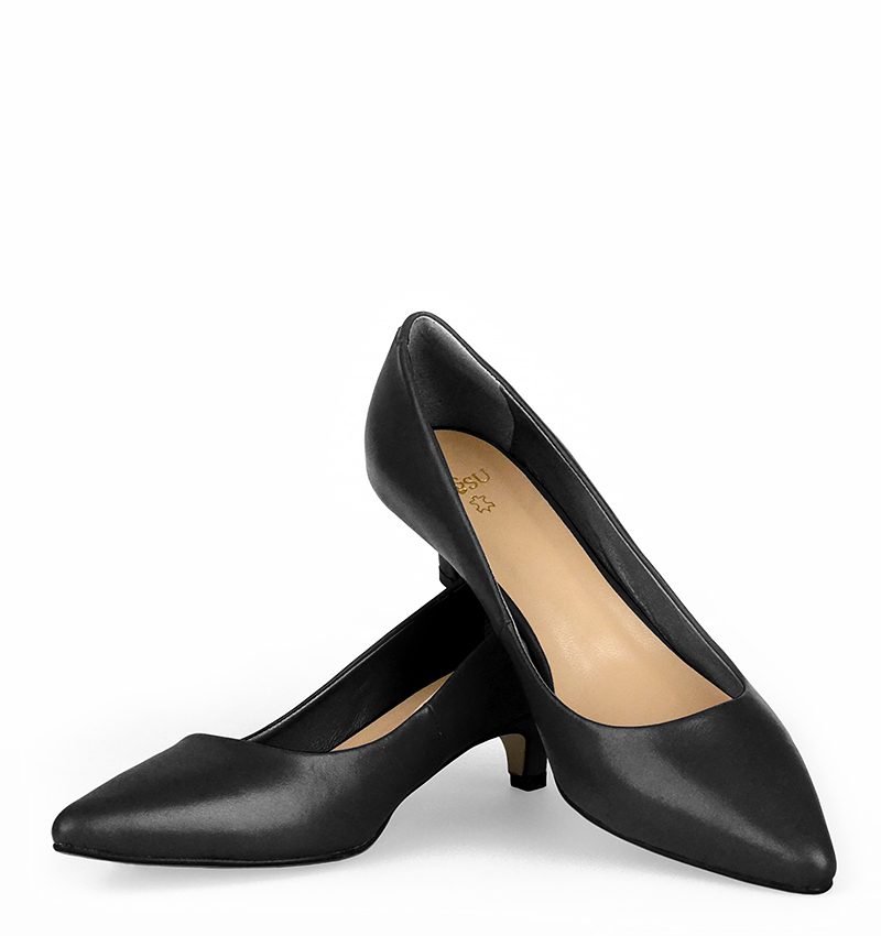 Czarne niskie szpilki wykonywane są ręcznie, dzięki czemu są dopracowane w każdym detalu. Ręczne wykonanie pozwala na dowolną zmianę koloru i rodzaju skóry na życzenie klienta.