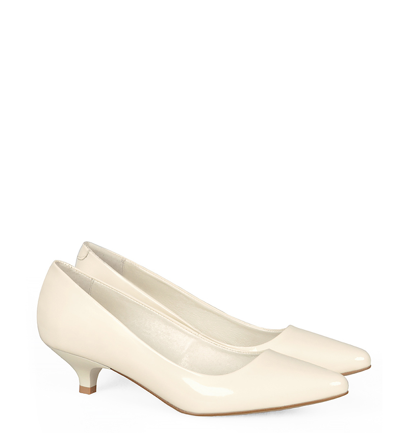 MICHELLE –  Ecre niskie szpilki na 4 cm obcasie na bardzo szczupłe stopy (wysokość obcasa jest mierzona w rozmiarze 37). Cholewka wykonana z naturalnej skóry lakierowej. Niska 4 cm szpilka sprawia, że są to bardzo wygodne czółenka na szpilce. Tęgość butów: F. Wnętrze butów i wkładka wykonane są ze skóry naturalnej.