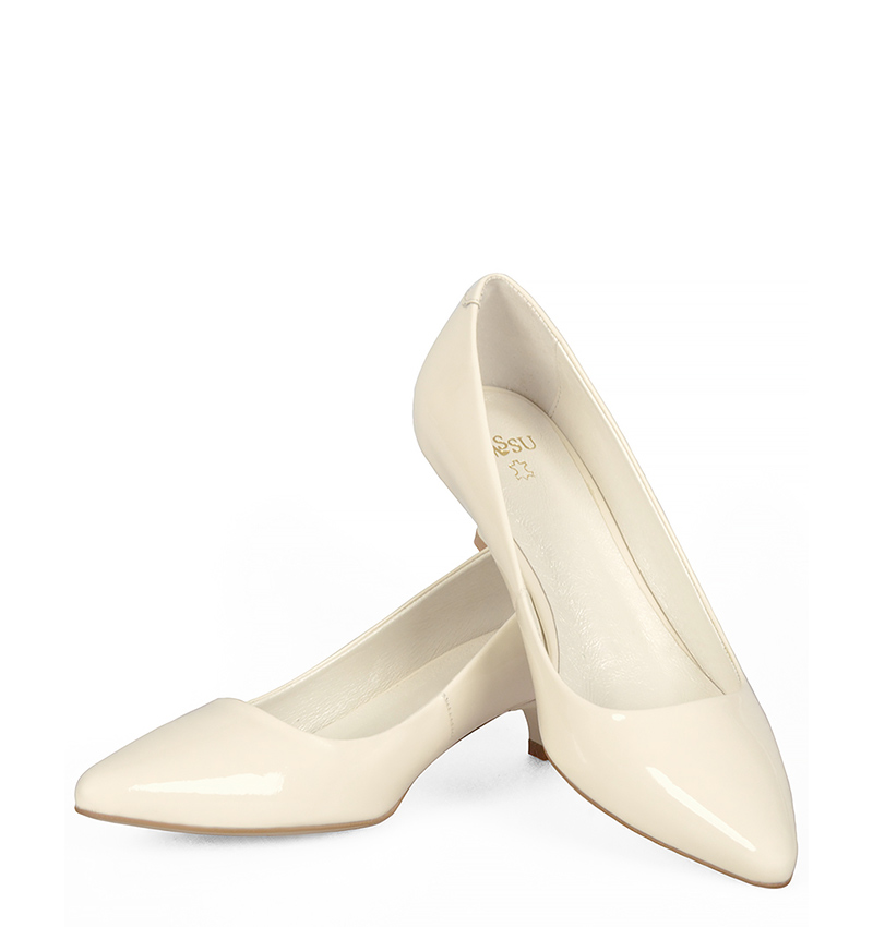 MICHELLE – Ecru szpilka na kaczuszce z lakierowanej skóry