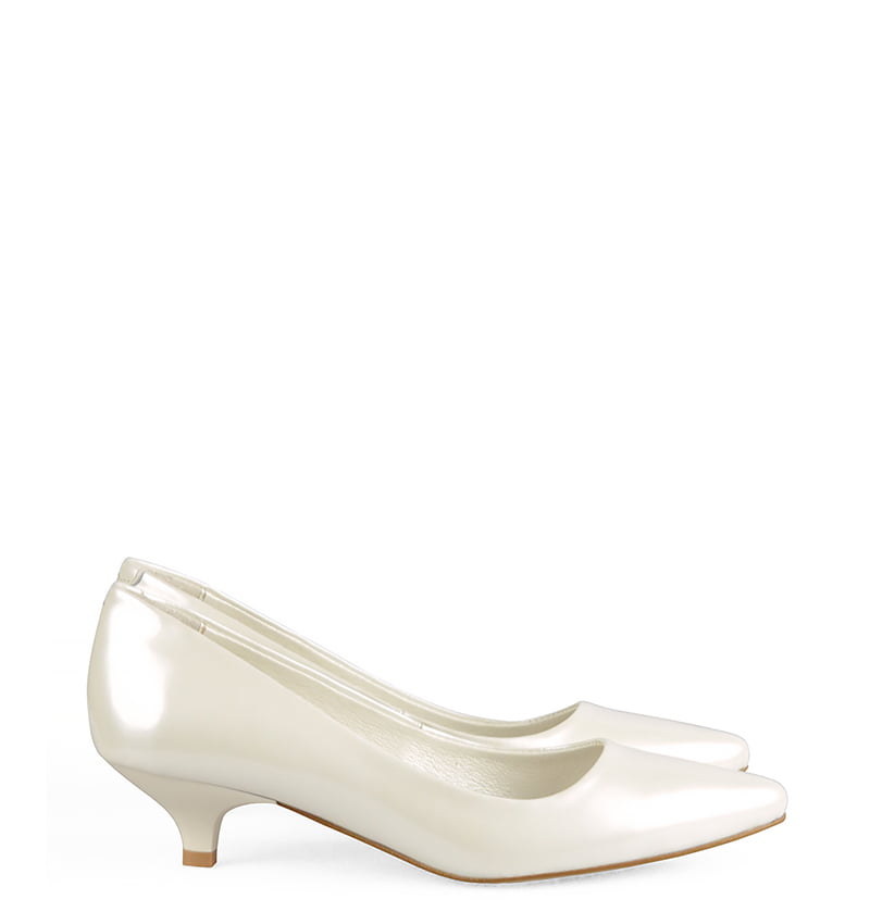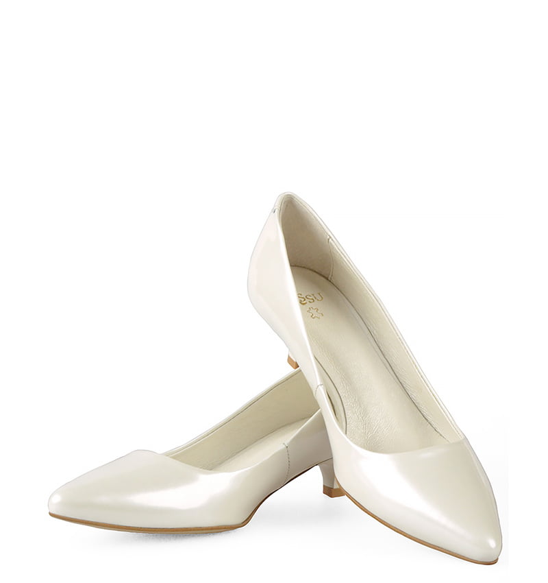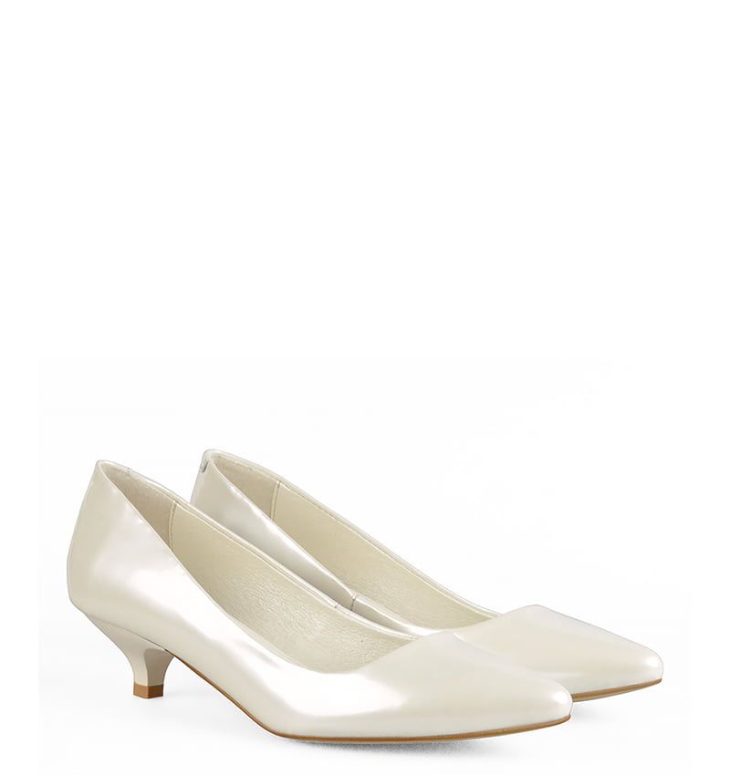 MICHELLE – Ecru szpilka z perłowej lakierowanej skóry na niskim obcasie