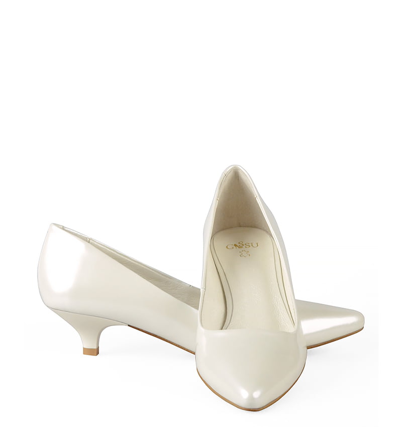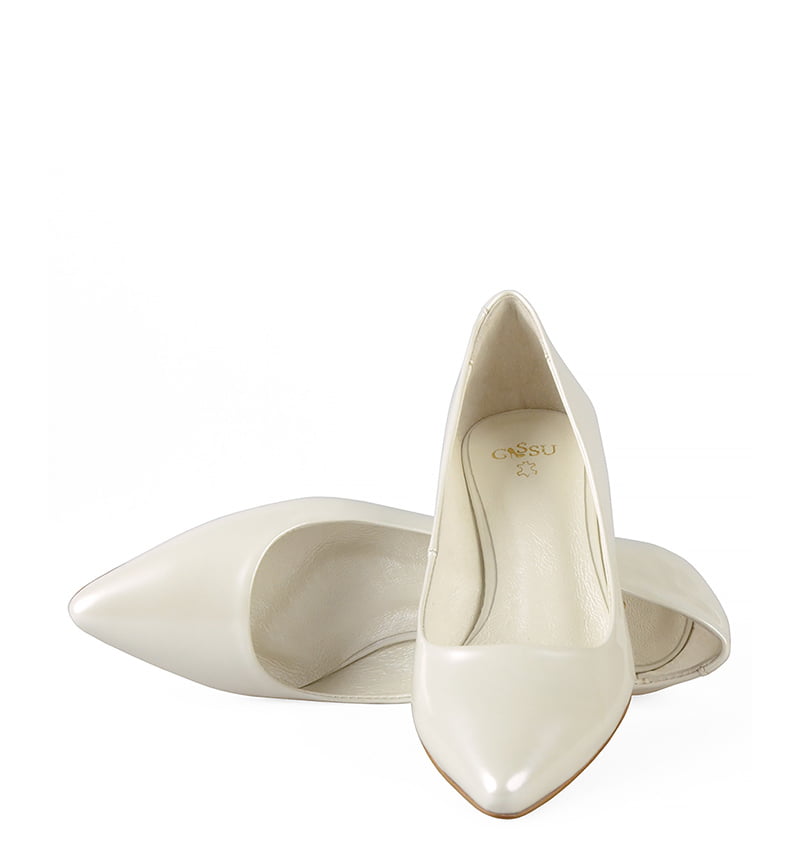 Strona główna > Sklep firmowy Gassu > Buty Damskie > MICHELLE – Ecru szpilka z perłowej lakierowanej skóry na niskim obcasie