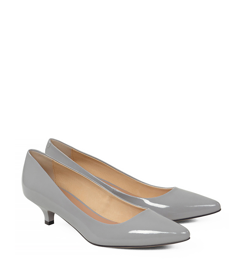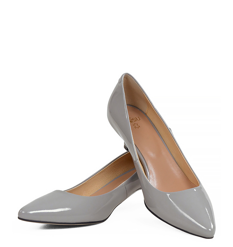 MICHELLE – Szare niskie szpilki z lakierowanej skóry