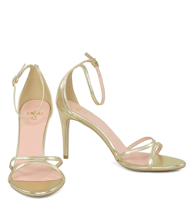 NARE – Złote sandały na szpilce z licowej skóry zakryta pięta