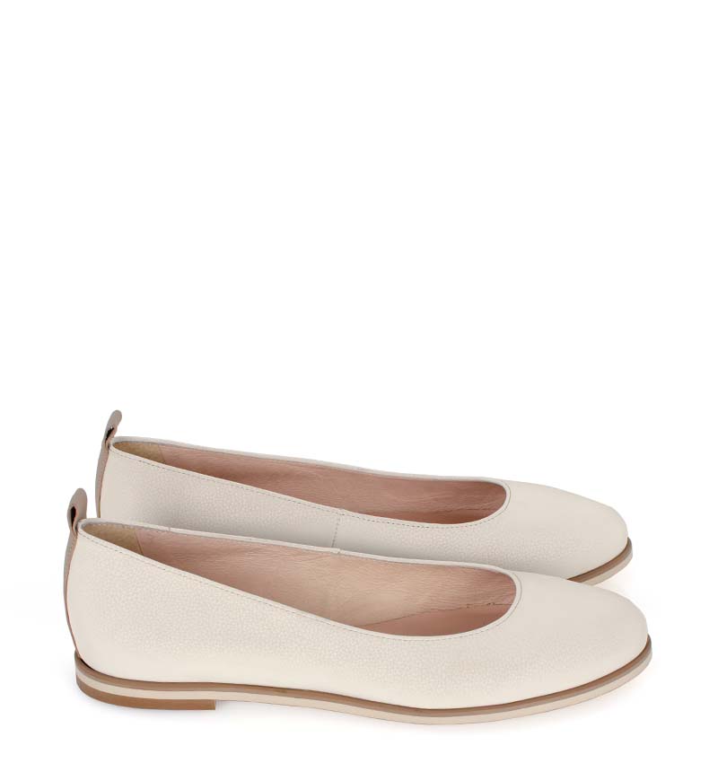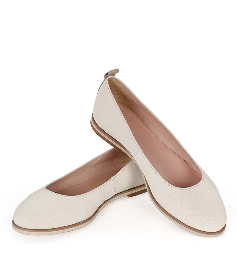 NIKA – Jasno beżowe balerinki na płaskim obcasie. Baleriny z okrągłym czubkiem. Buty wykonane z naturalnej skóry układającej się do stopy. Tęgość butów: F 1/2. Wnętrze balerin i wkładka wykonane są ze skóry naturalnej.