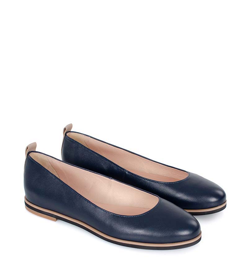 Granatowe baleriny są wykonywane ręcznie, dzięki czemu są dopracowane w każdym detalu. Ręczne wykonanie pozwala na dowolną zmianę koloru i rodzaju skóry.