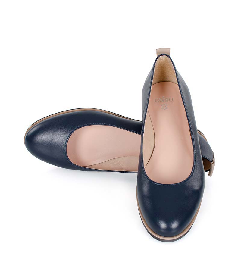 Strona główna > Sklep firmowy Gassu > Buty Damskie > Baleriny damskie > NIKA – Granatowe baleriny z beżową lamówką na podeszwie