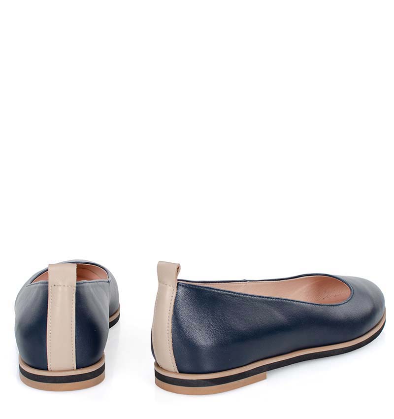 NIKA – Granatowe baleriny z beżową lamówką na podeszwie