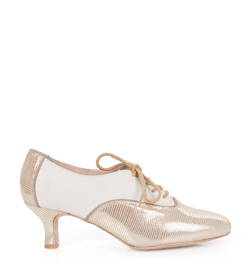 Średnio wysoki obcas - 5,5 cm jest bardzo dobrą wysokością do tańca, zapewniającą atrakcyjny wygląd stopy przy zachowaniu komfortu i stabilności w tańcu. Obcas w modelu PILAR troszkę grubszy i jest obciągnięty skórą.